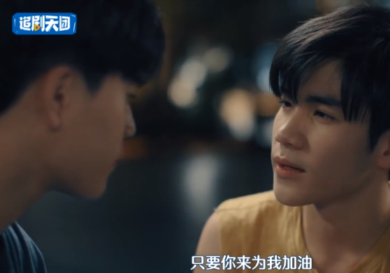 Tinn神情盡是寵溺地為心愛的Gun打氣加油~